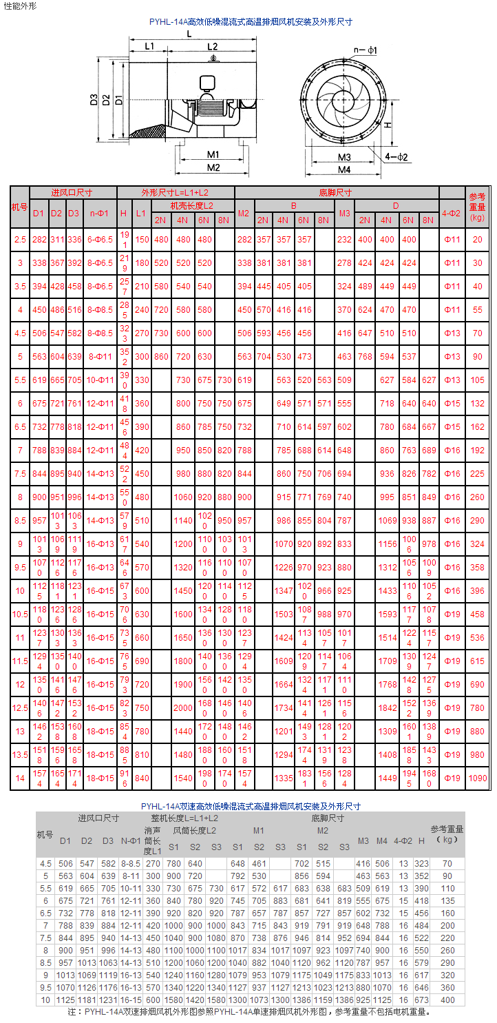 | PYHL-14A風機性能 | PYHL-14A風機外形 |