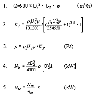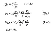 當使用狀態為非標準狀態時,必須把非標準狀態的性能換算到標準狀態的性能,然后根據換算性能選擇風機。其換算公式如下:
