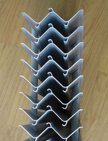 擋水板是中央空調末端裝置的一個重要部件,它與中央空調相配套,作汽水分離功能?晒┫盗衅贩N有以玻璃鋼、不銹鋼、鋁合金、鍍鋅板為材質的波紋多棱擋水板和導流板。本產品適用紡織、化纖、冶金、機械、醫藥、電子、環保除塵、商場、賓館的中央空調器。